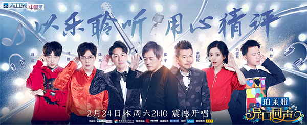 在粉丝们的翘首期待下,由尊龙独家冠名,浙江卫视出品的大型音乐猜评推理节目《异口同声》已正式开播。这一季采用全新模式,在邀请乐坛代表性歌手讲述金曲背后故事的同时,也邀请到经过严格甄选及专业培训的模唱歌手,用他们以假乱真的声线向专业猜评团发起挑战,同时也向原唱歌手和时代金曲致敬。节目将由原唱歌手与三位模唱歌手在竞演门内演唱同一首歌,由观众和猜评团成员投票选出谁才是原唱。除了参与节目的歌手外,节目的猜评团也阵容强大,由歌手张宇、音乐制作人黄国伦、段子手刘维、选秀新星魏巡、鬼马主持人马松、人气主播冯提莫组成。